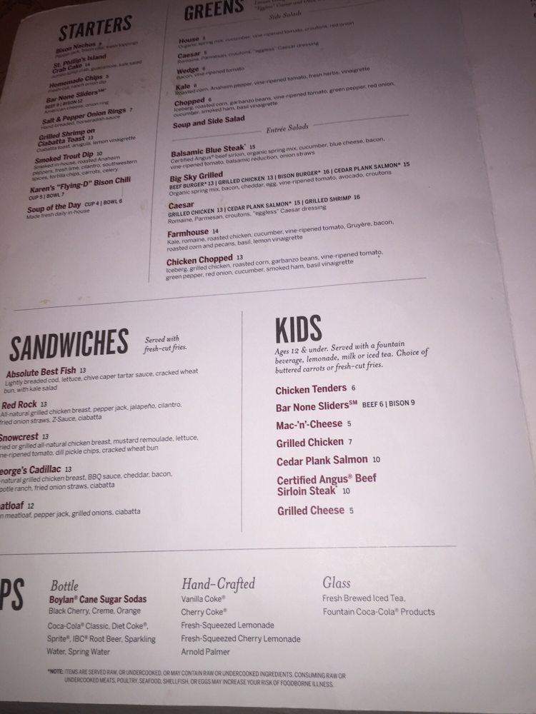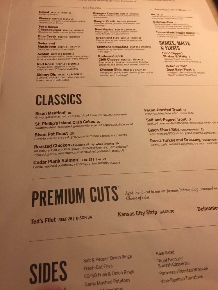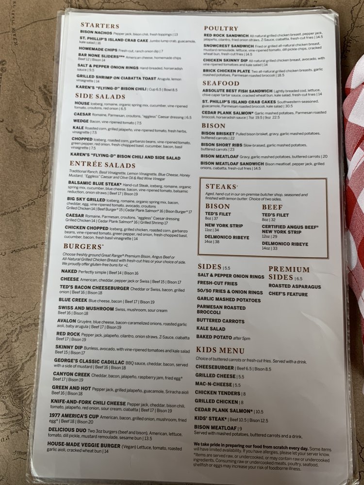 Ted's Montana Grill Menu